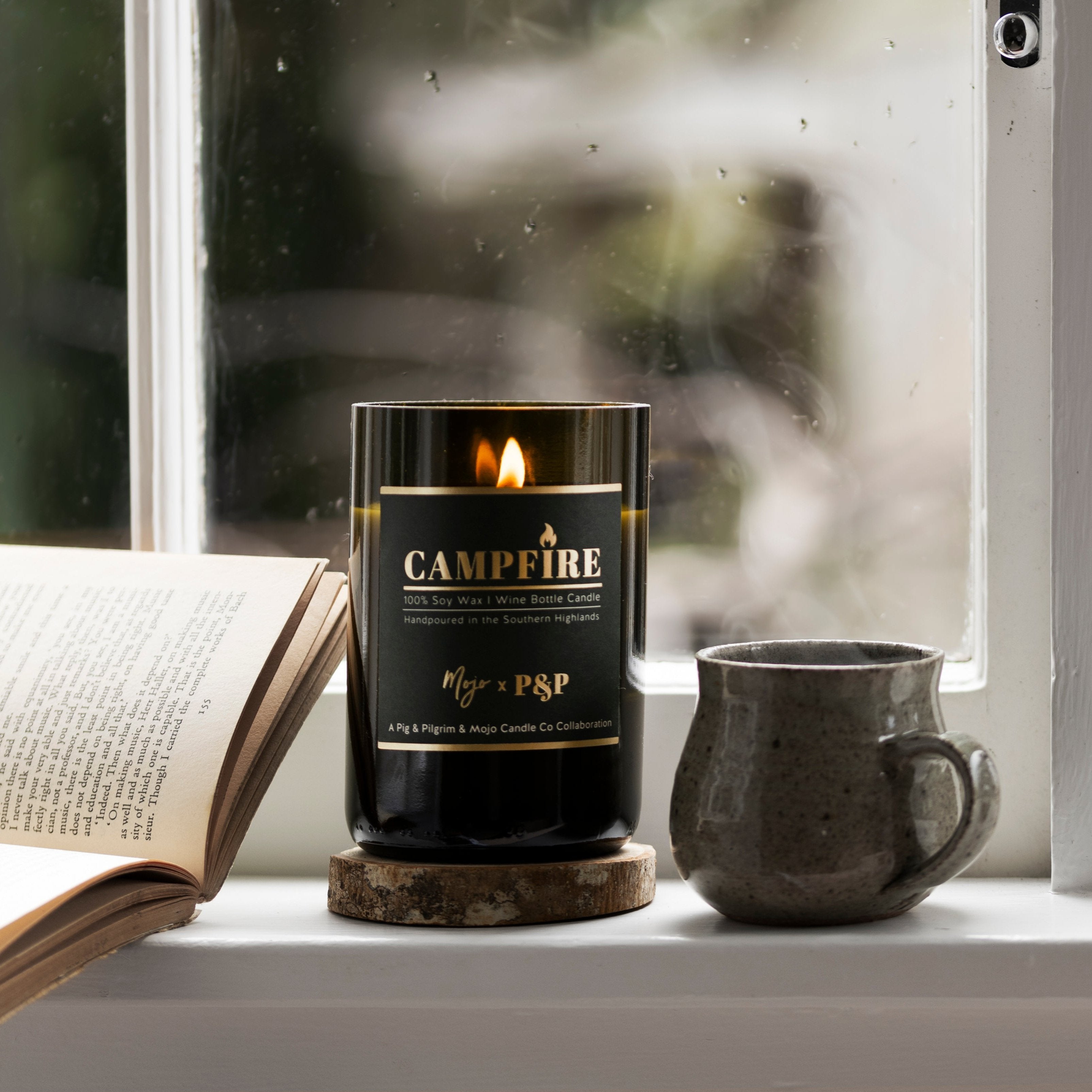 CAMPFIRE CANDLE - MADE FROM RECLAIMED WINE BOTTLE