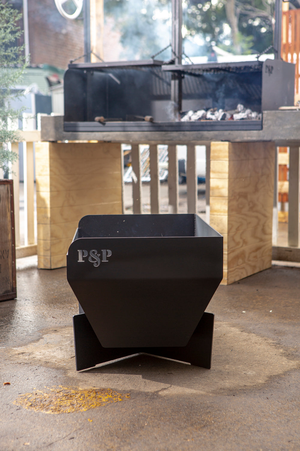 Introducing the Pig & Pilgrim Firepit. It's handcrafted to be the perfect accessory to your Pig & Pilgrim Campfire parrilla grill - slot it on top and you have a mean cooking machine, take it away and you get a toasty firepit. We get so many queries about which firepit is best to use with a Pig & Pilgrim Campfire that we figured we'd build our own!