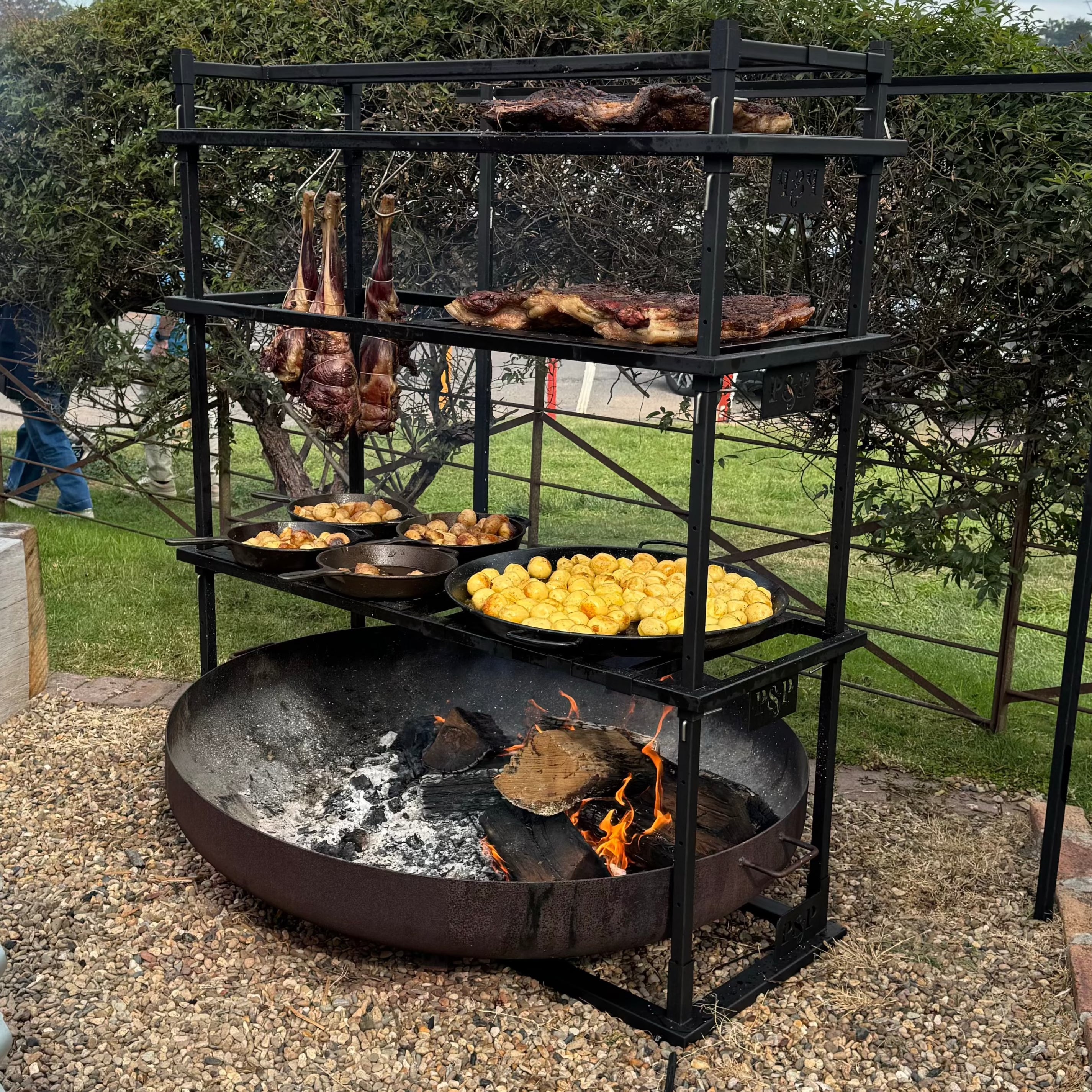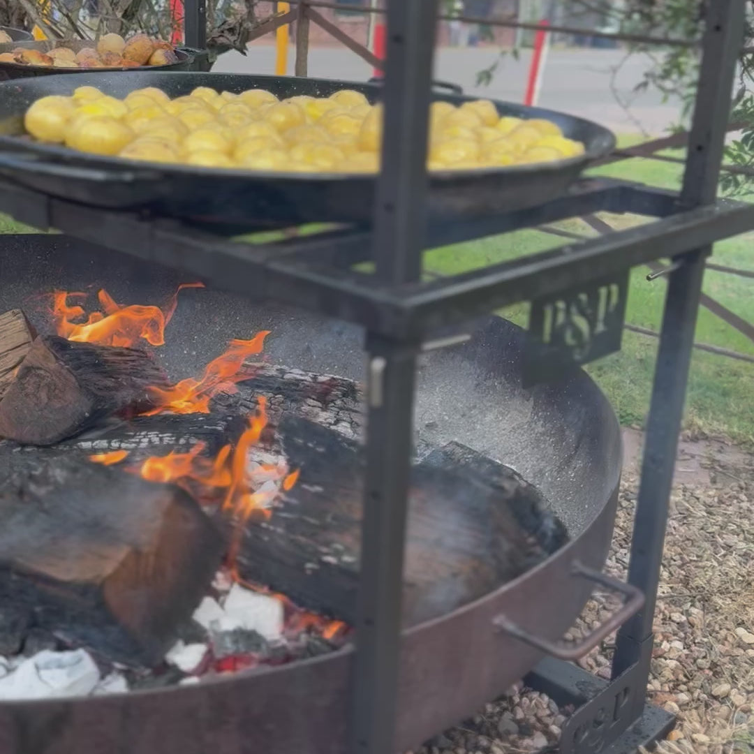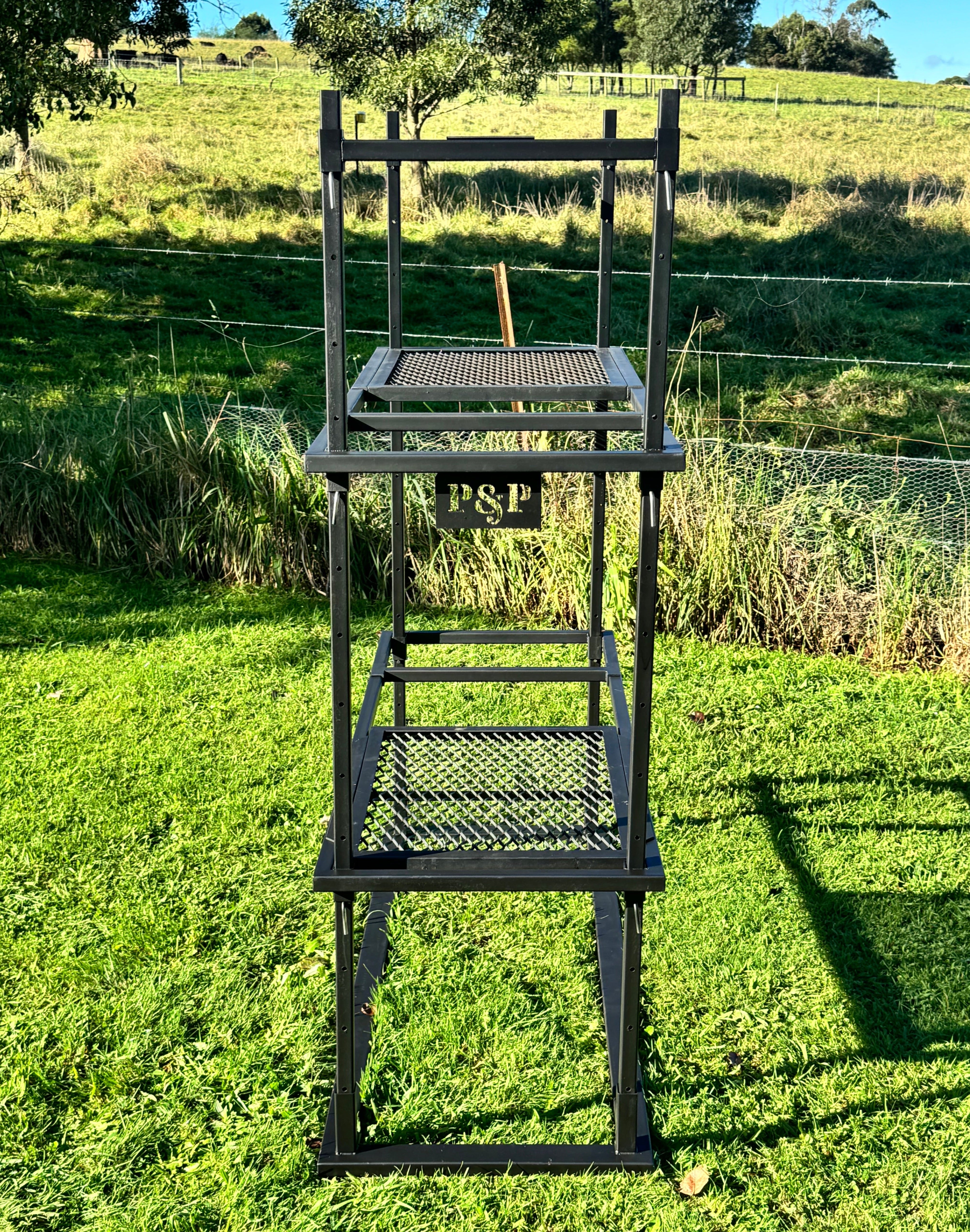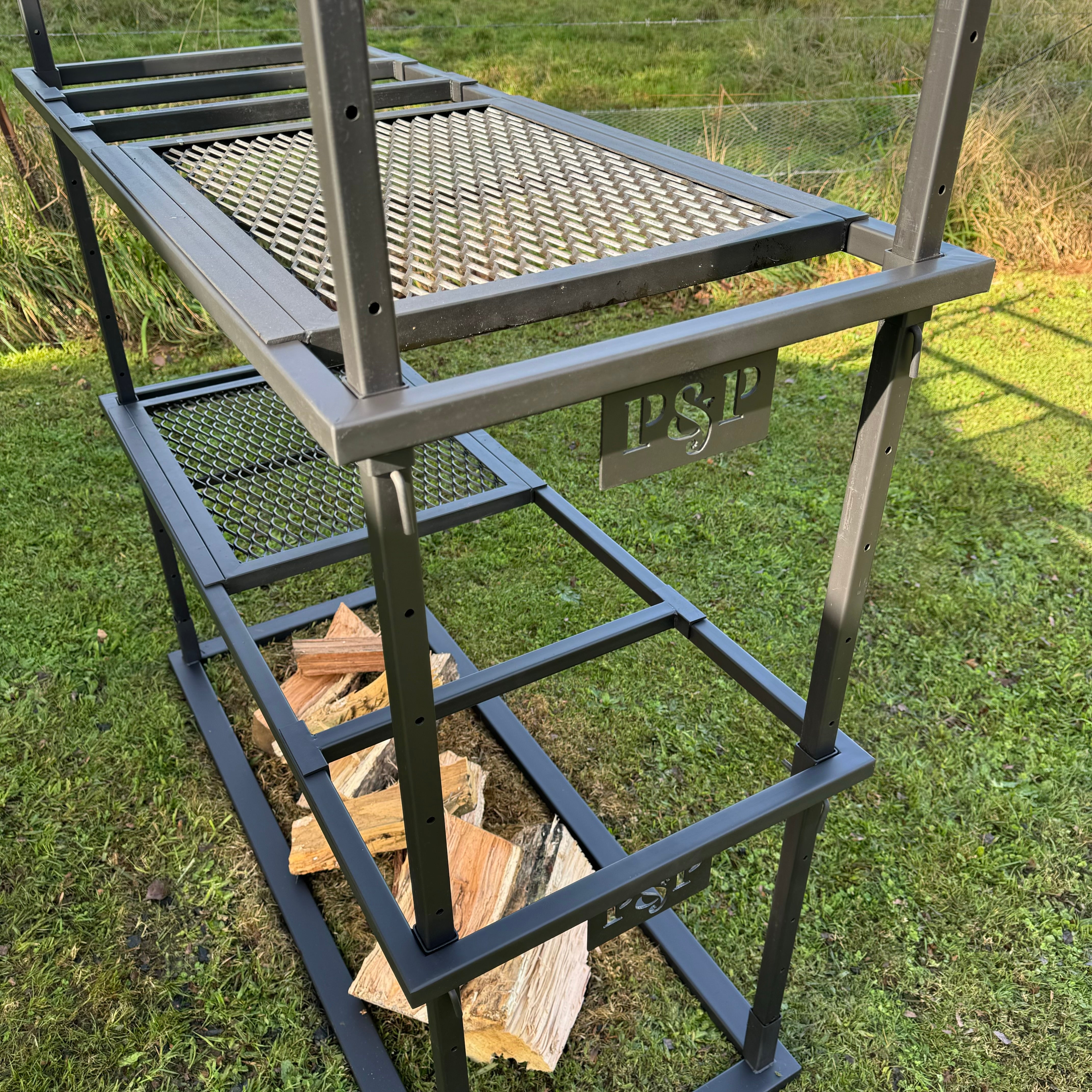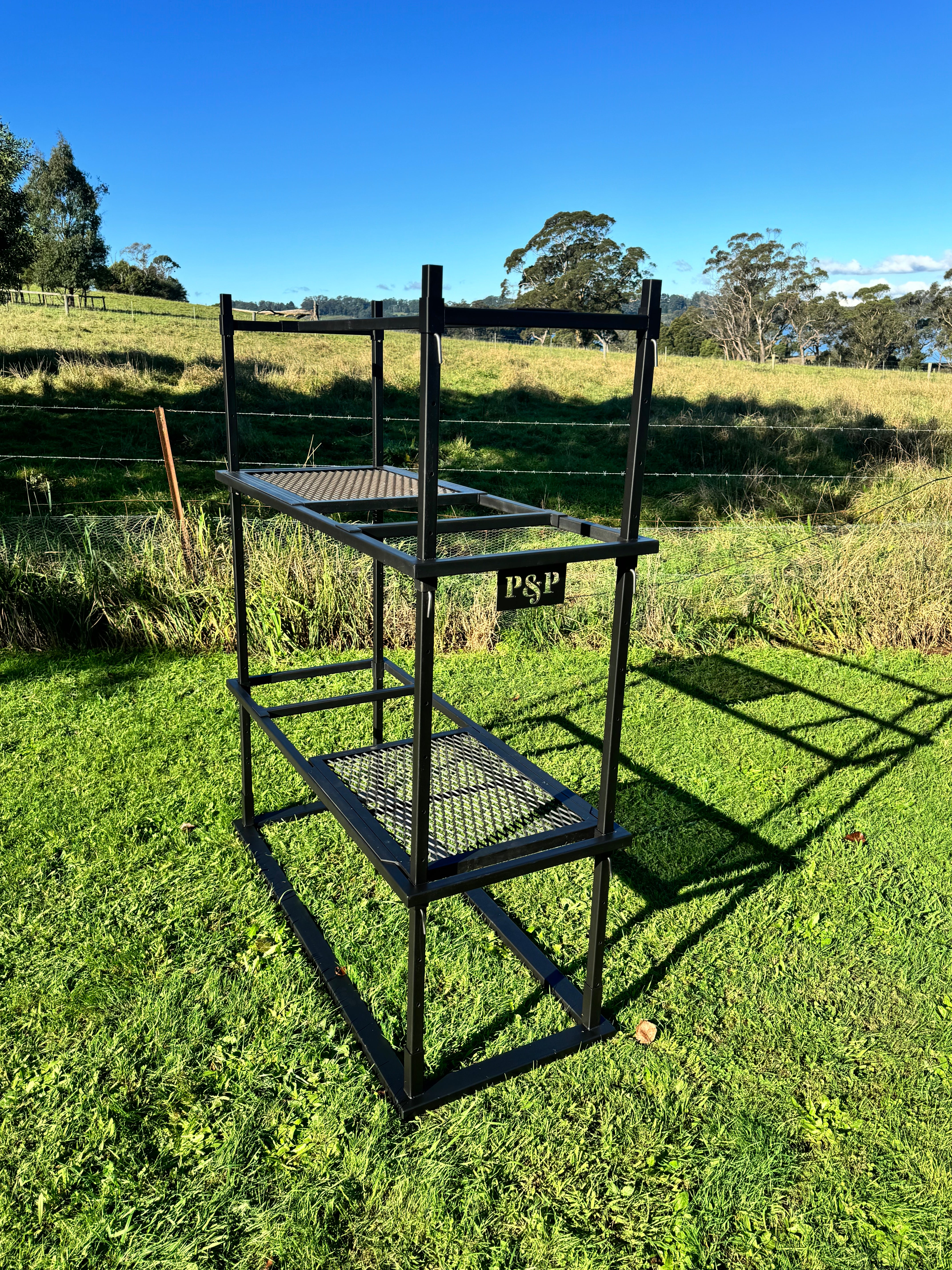 No pit. No drama. Just good fire cooking. Portico 3 is made for those who pack light but still want a proper feed. It ditches the built-in fire pit so you can throw it over a campfire or coals on the road. It’s lighter to haul, quicker to set up, and still gives you two mesh grills and plenty of hanging options. Ideal for camping, road trips, or blokes who don’t want to lug a ton of steel but still want to cook properly.