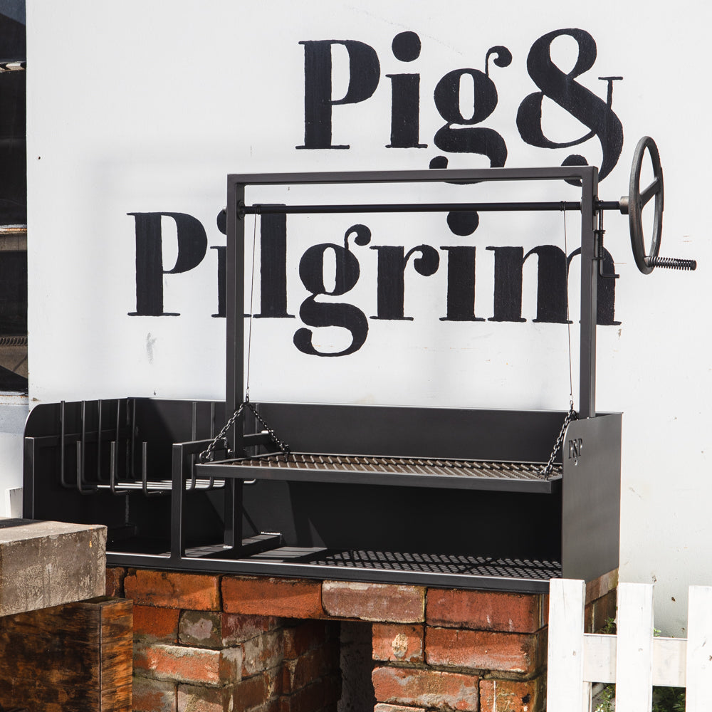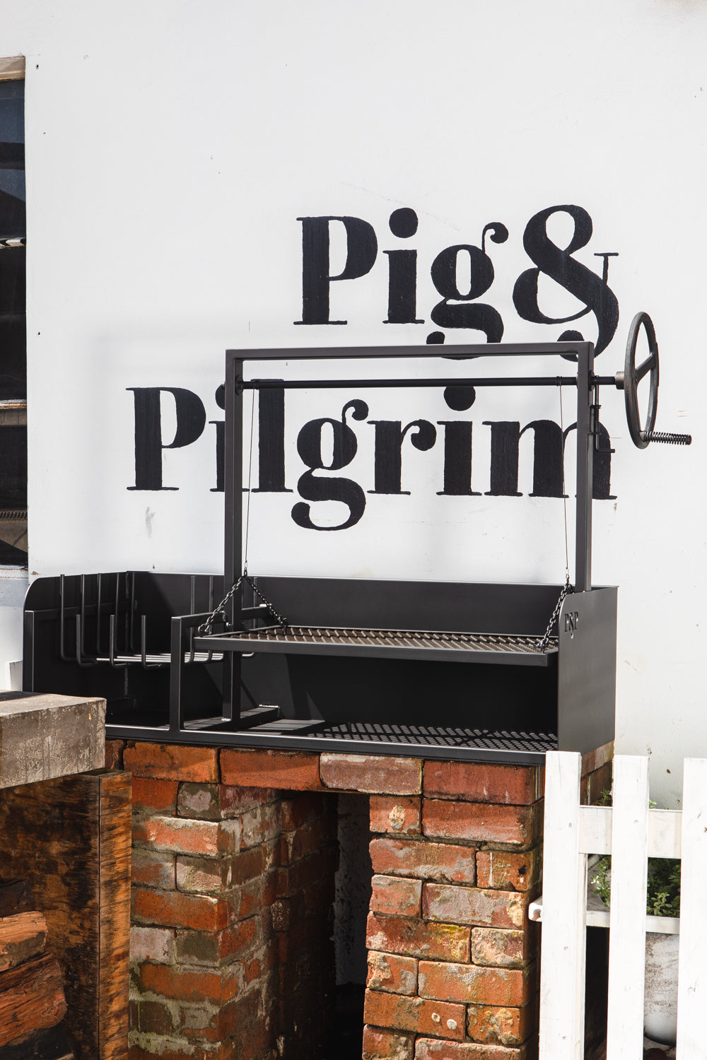 Like all Pig & Pilgrim BBQs it features a height-adjustable grill plate which can be raised or lowered easily by the hand wheel. This allows the cook to modify the amount of heat and smoke reaching the food to maximise the sweet, sweet char.