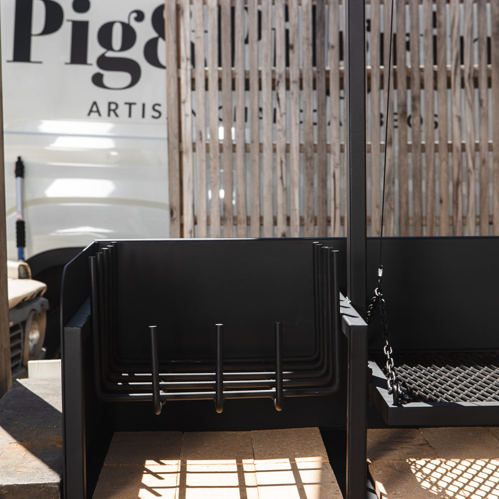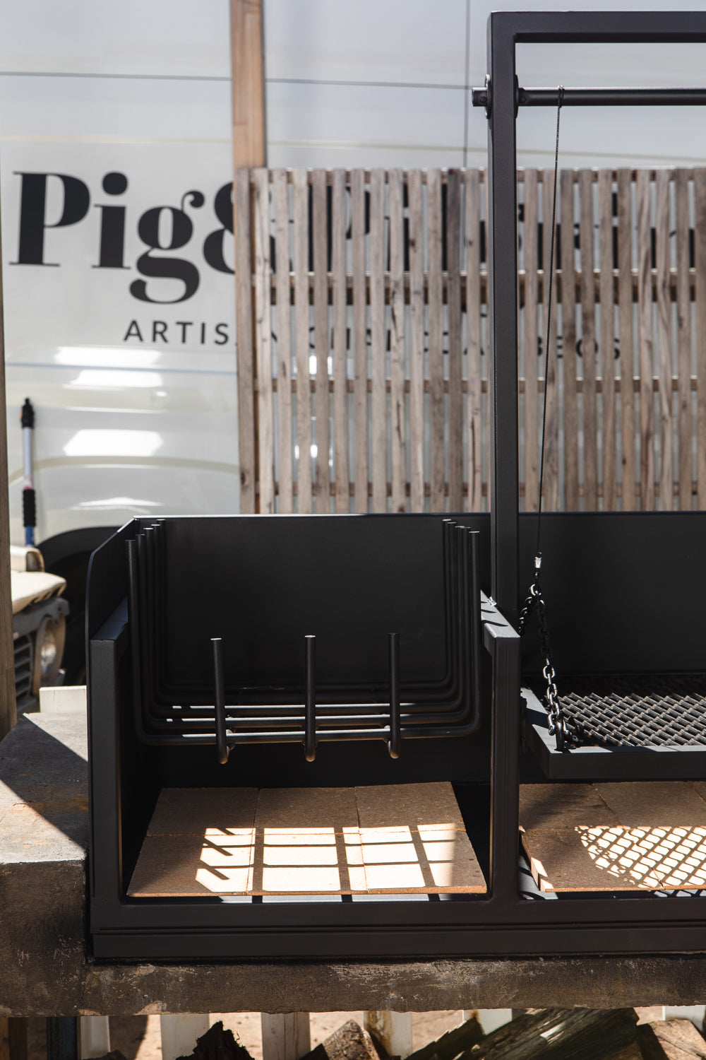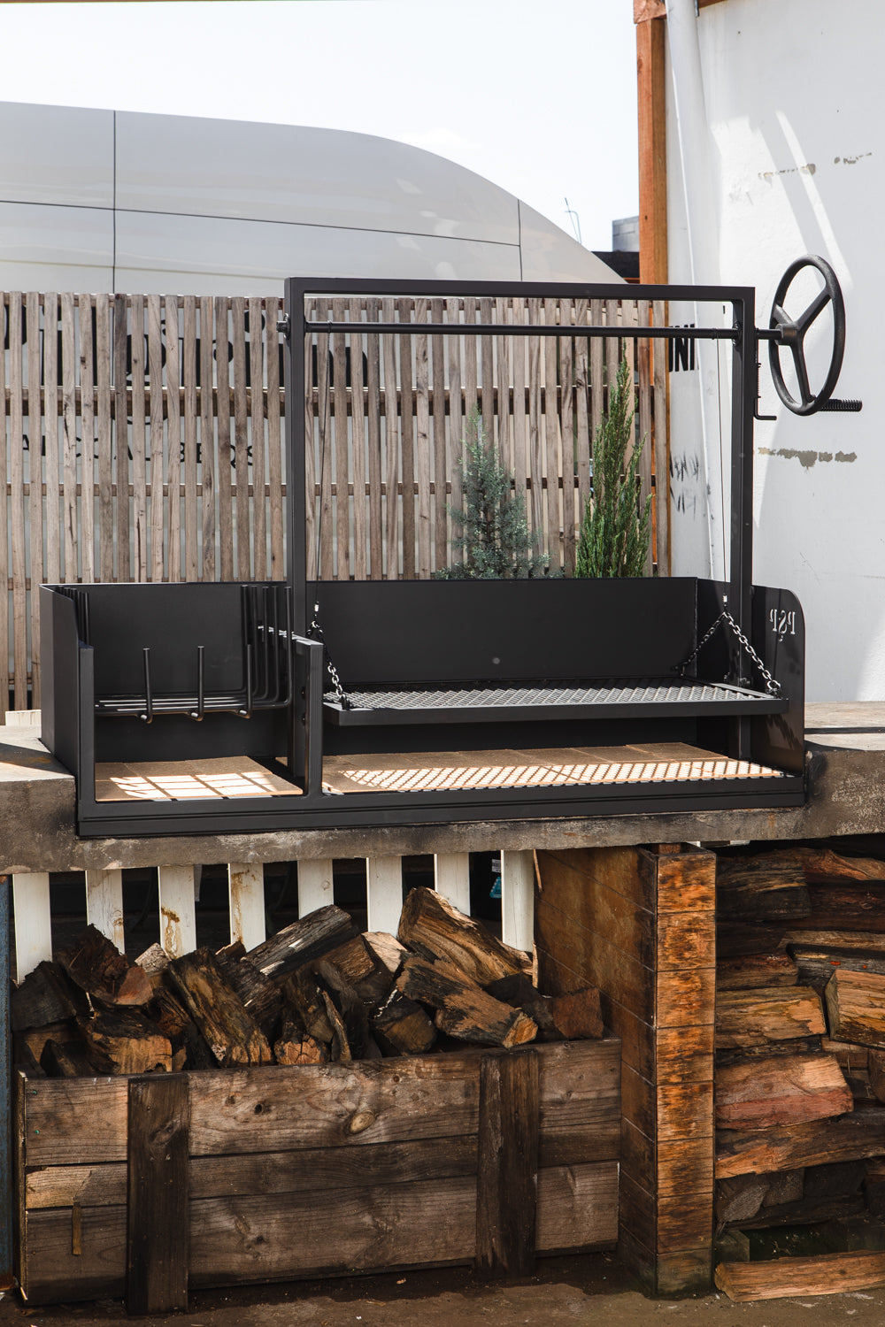 Our Sideburn parrilla is the grandest beauty of all our beasts. Her brasero on the side is as beautiful as it is functional; that’s where you stack and light your wood which turns to charcoal and is then moved across to underneath your cooking surface.