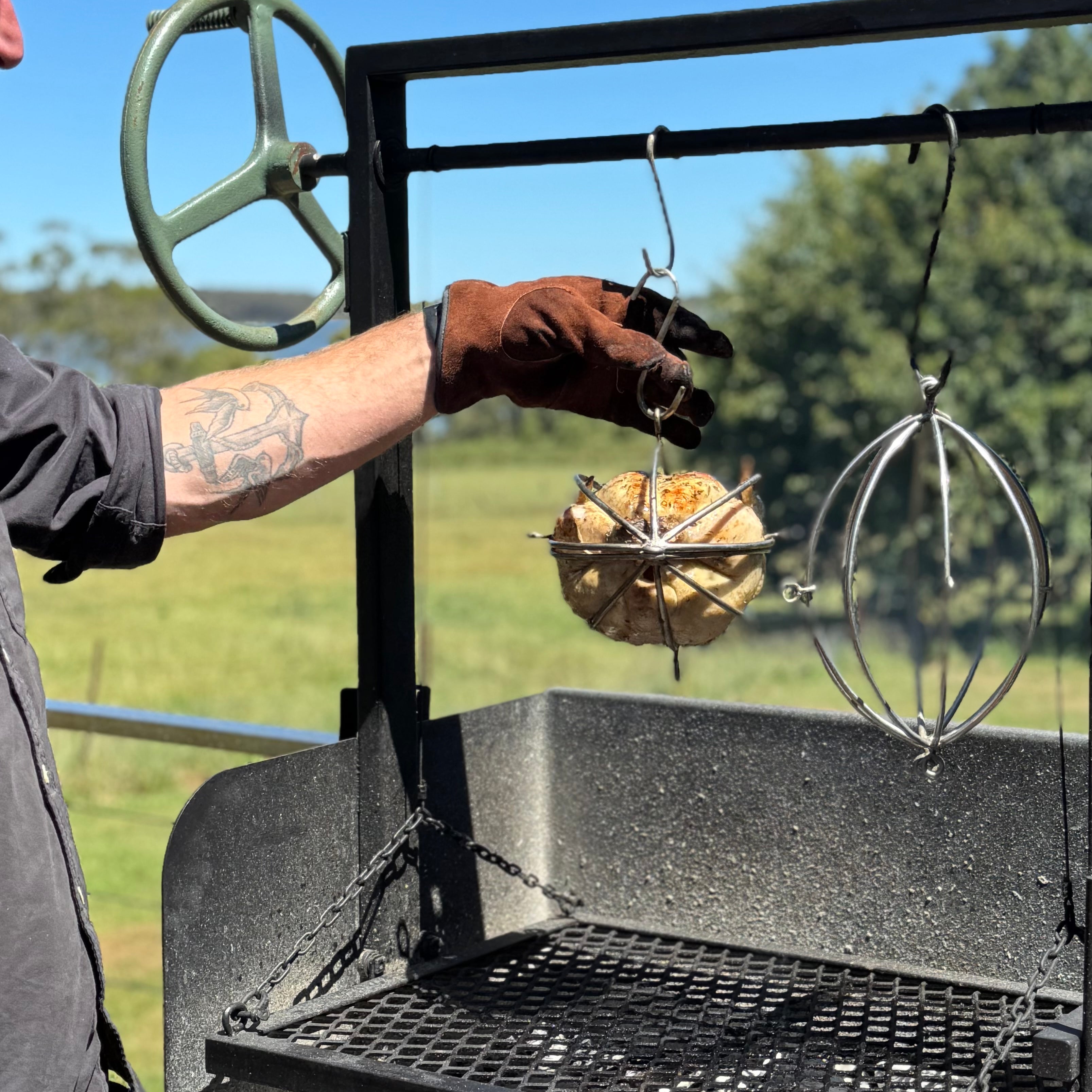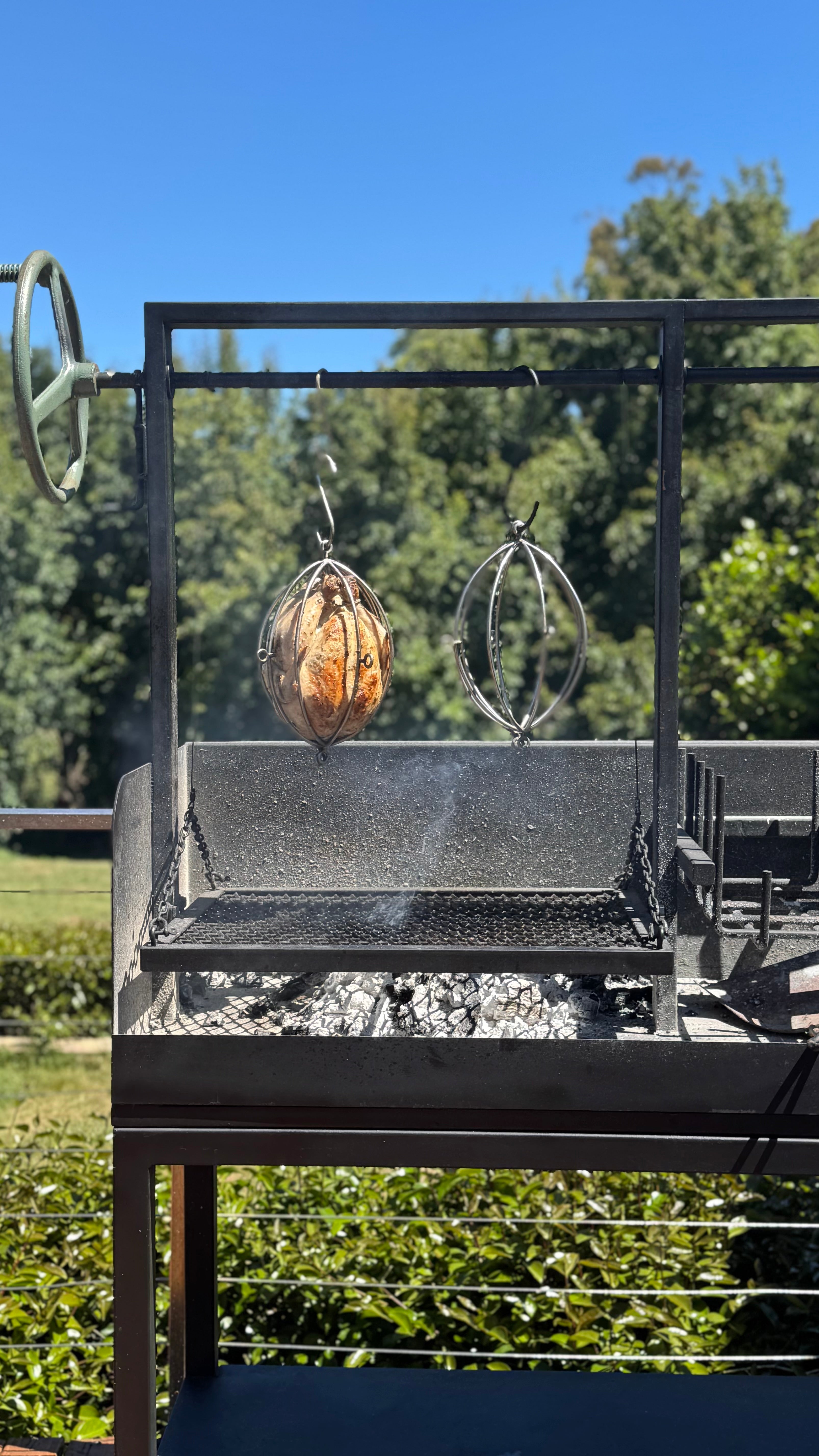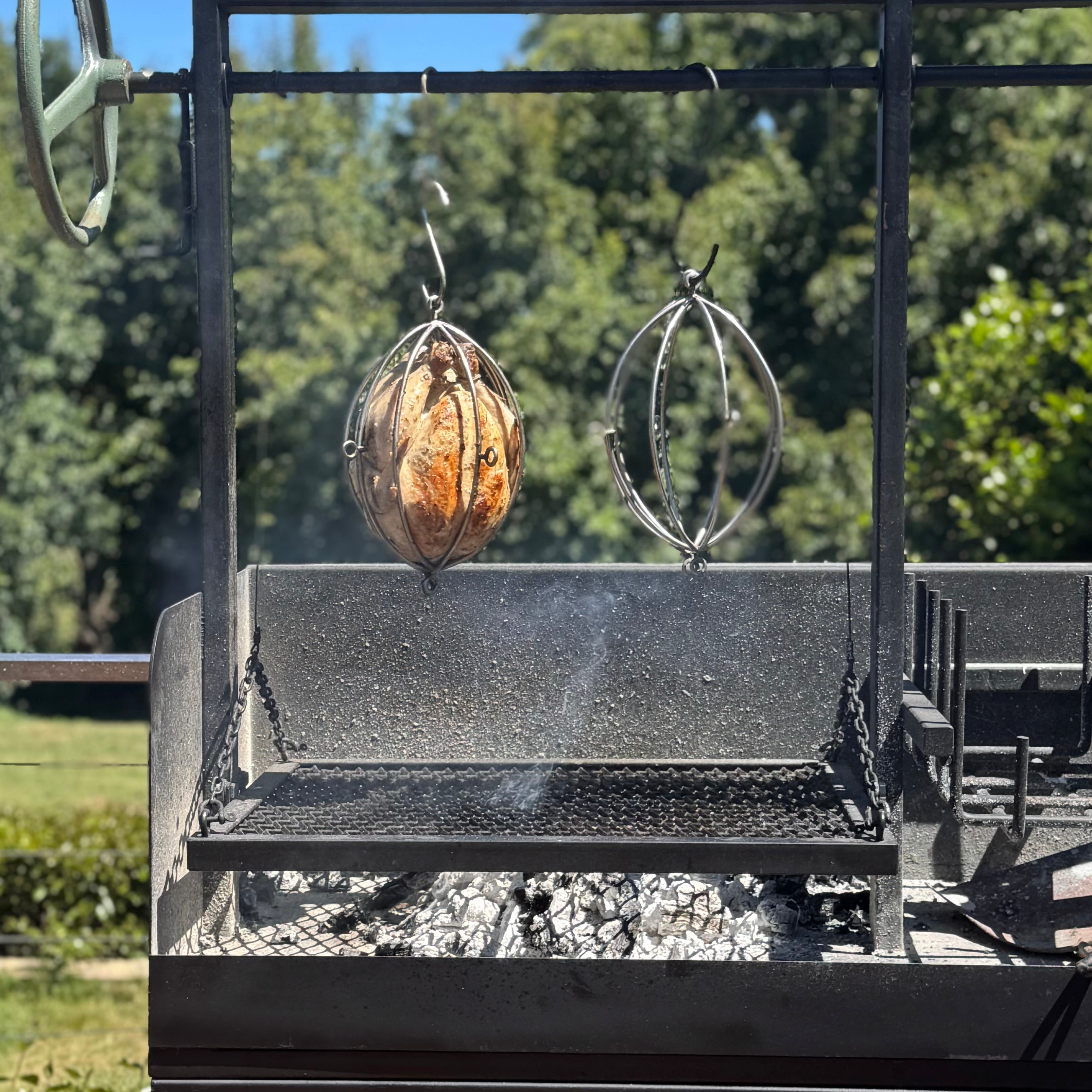 With multidirectional hanging eyelets, you get beautifully even cooking no matter how you set it up. And yep… it definitely resembles a shiny metal football — but it’s much better at making perfect chicken than scoring goals.