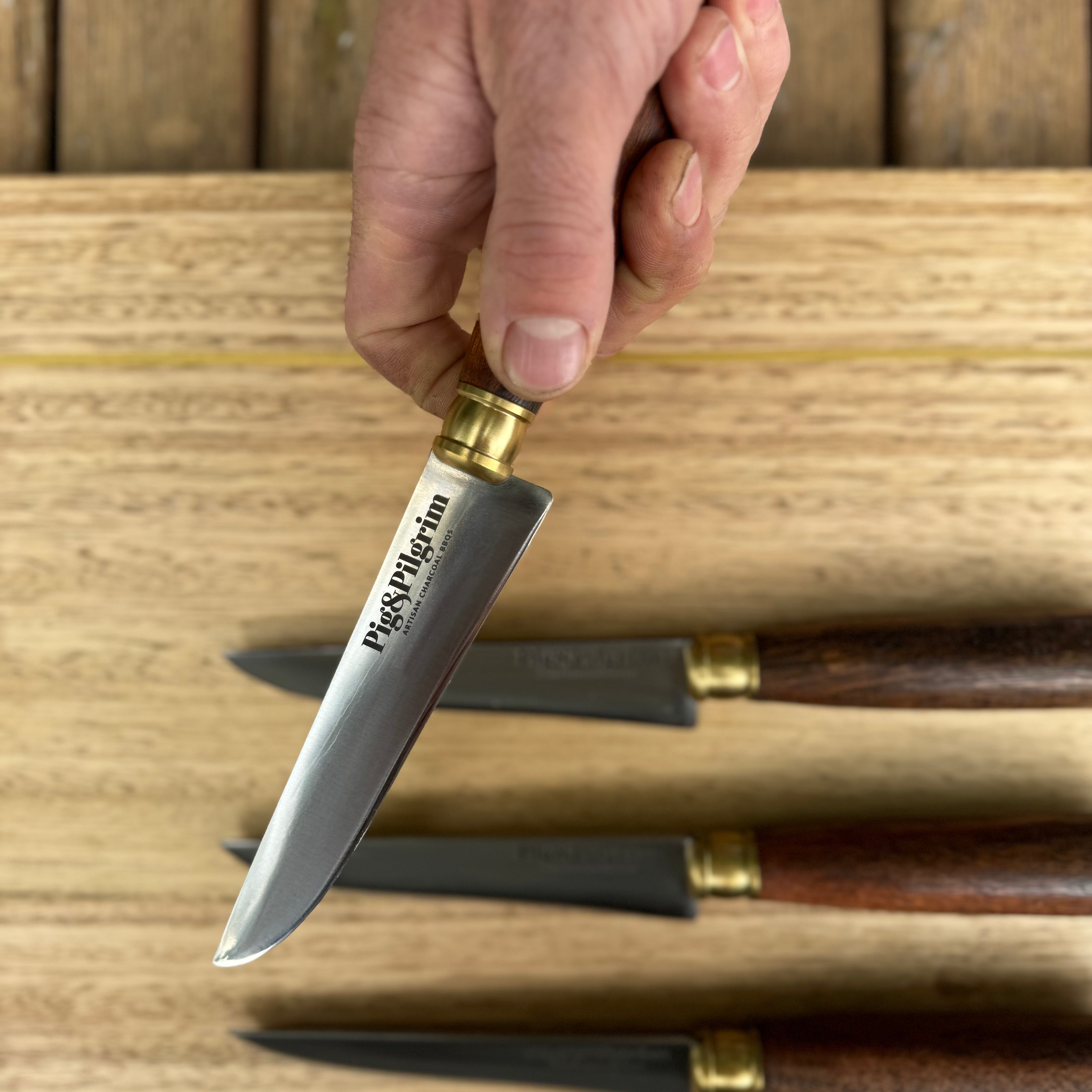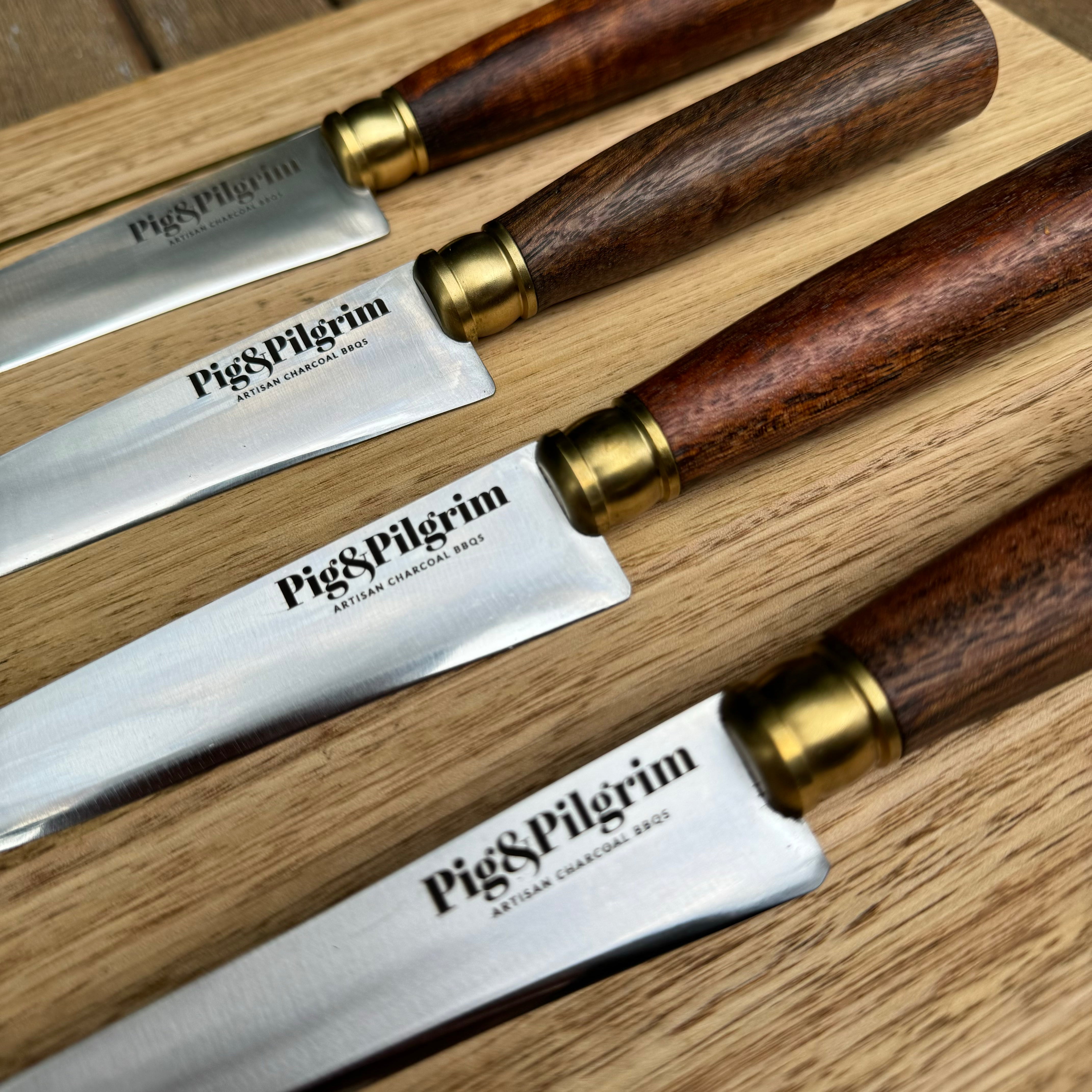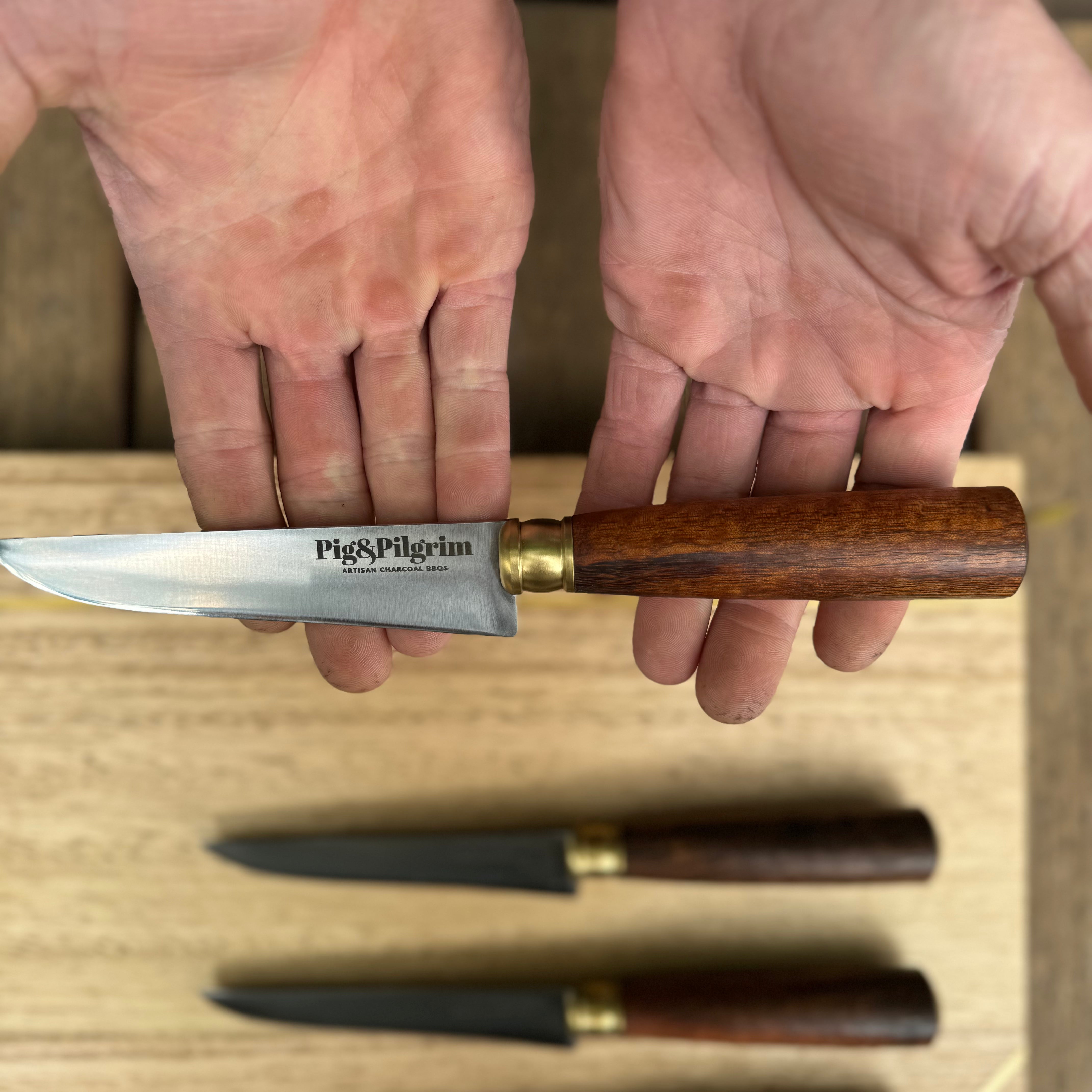 They’re solid, weighty, and ready to take on any steak cooked on your P&P. And yes, they come with a custom leather knife roll - because what good are nice knives if they don’t travel in style?