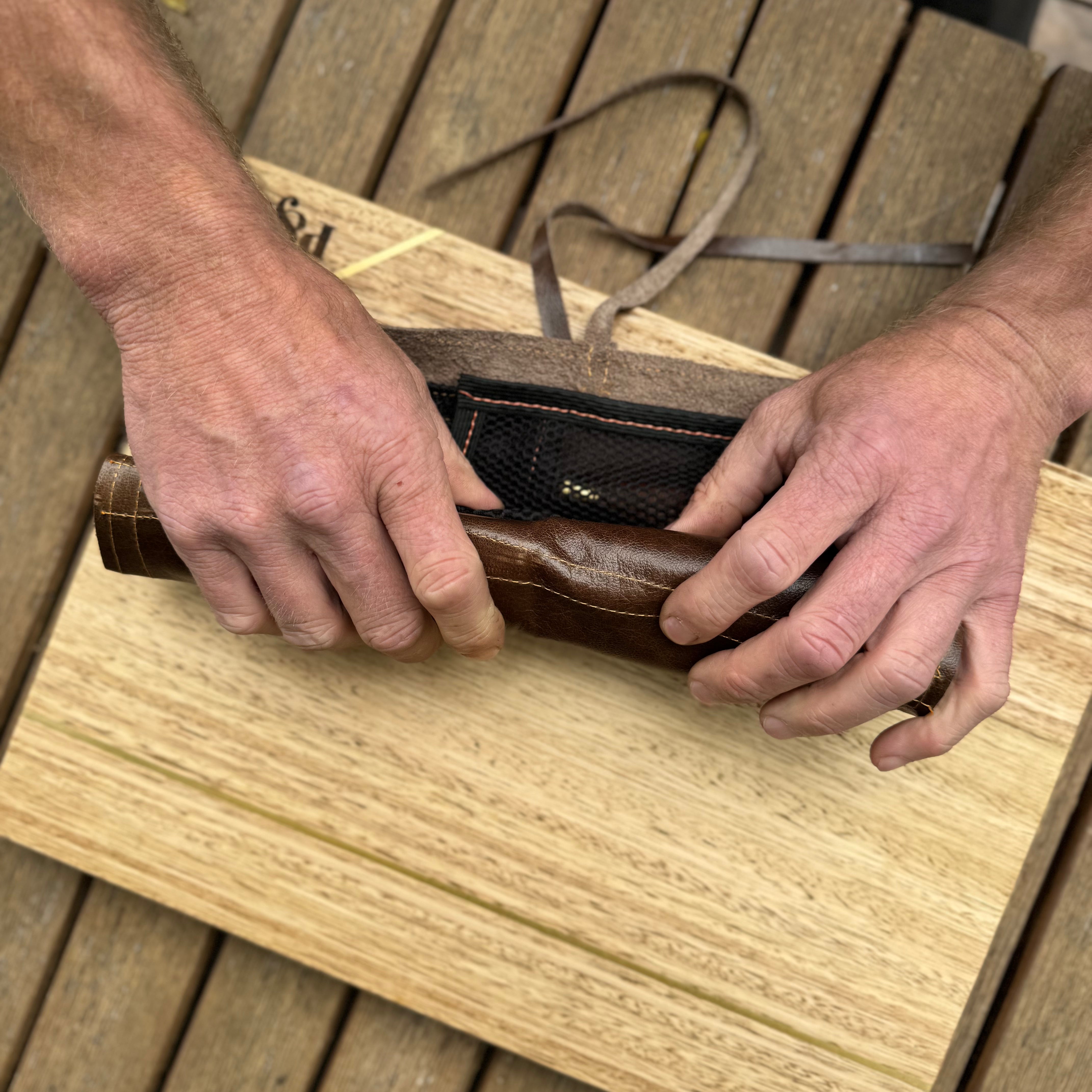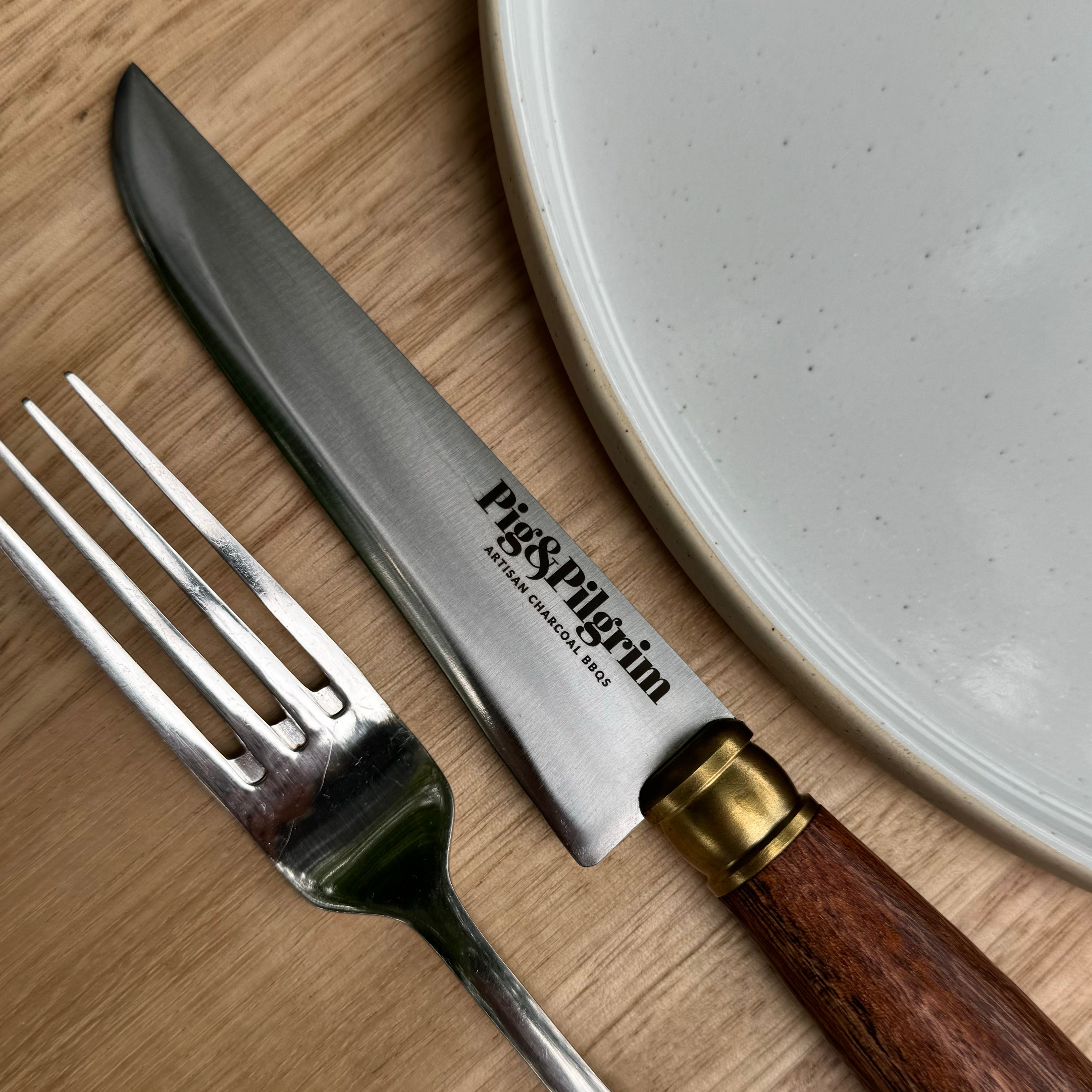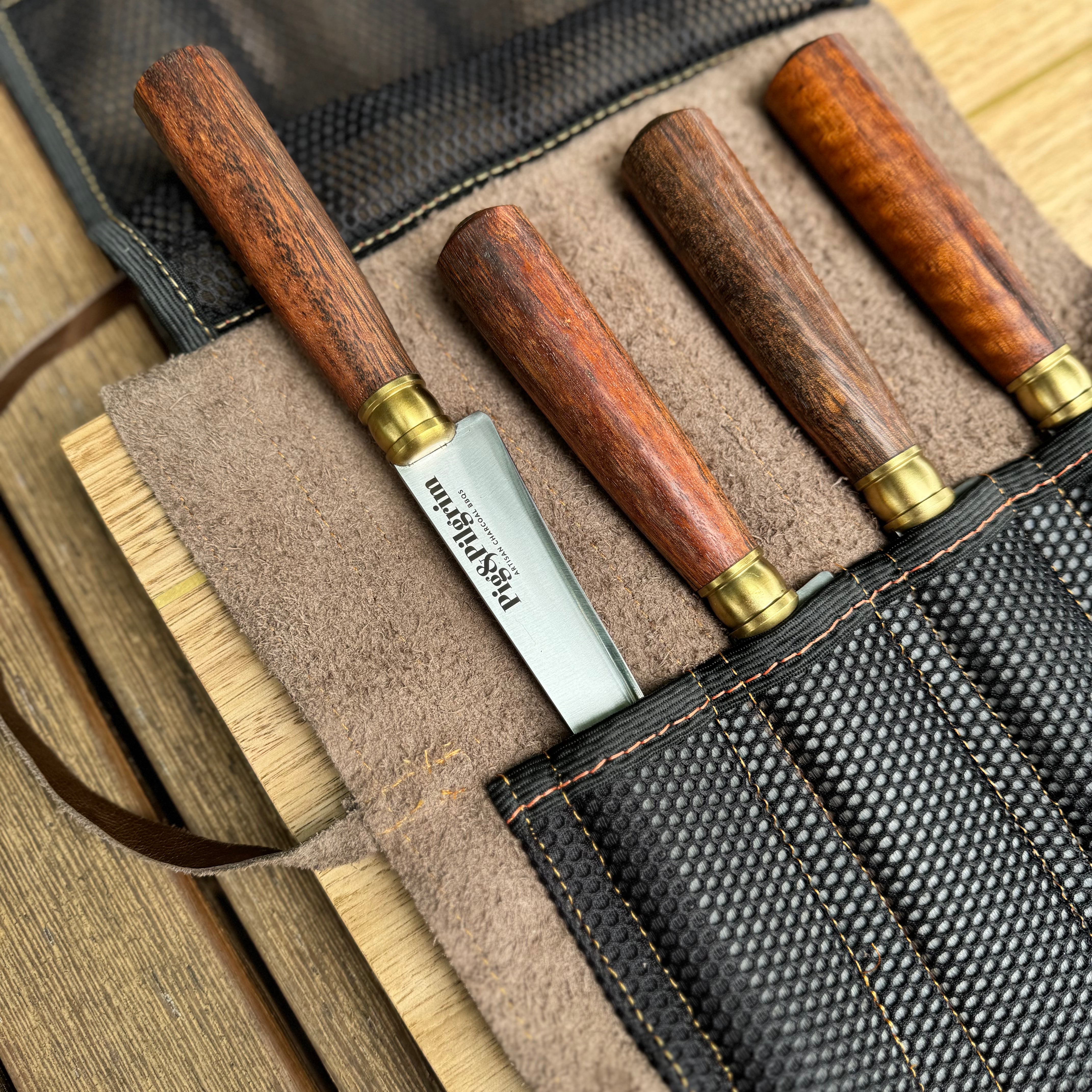They’re solid, weighty, and ready to take on any steak cooked on your P&P. And yes, they come with a custom leather knife roll - because what good are nice knives if they don’t travel in style?