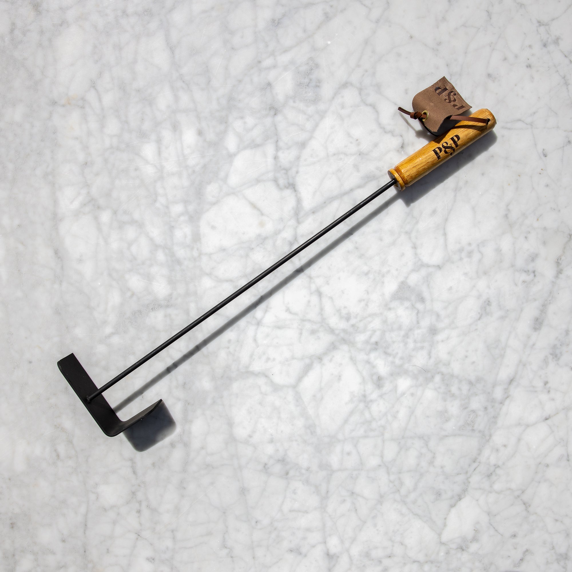 Prod your coals around with our handmade Pig & Pilgrim Charcoal Rake. The right angle design makes it perfect for pushing coals forward or pulling them across from beneath the brassero on the Pig & Pilgrim Sideburn.