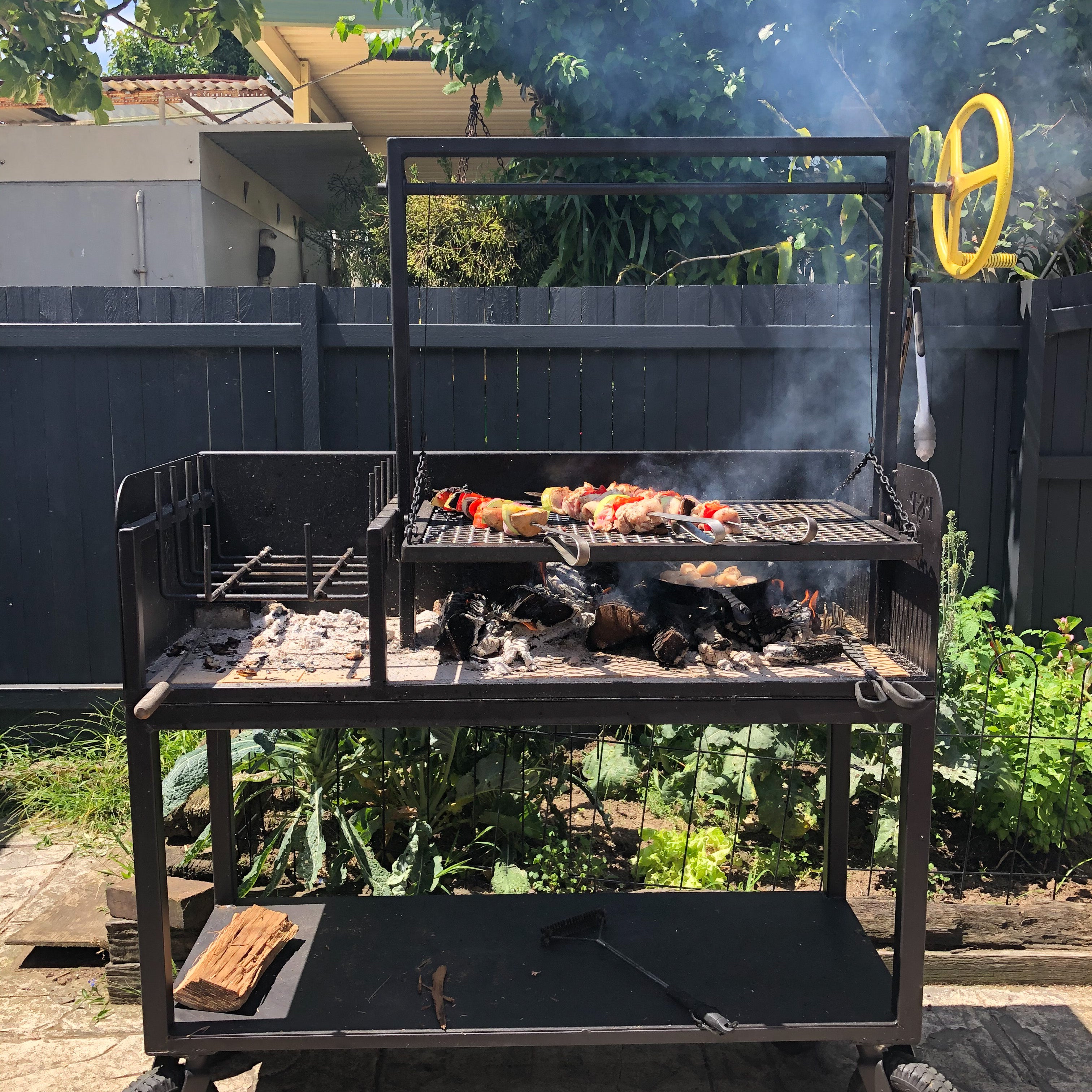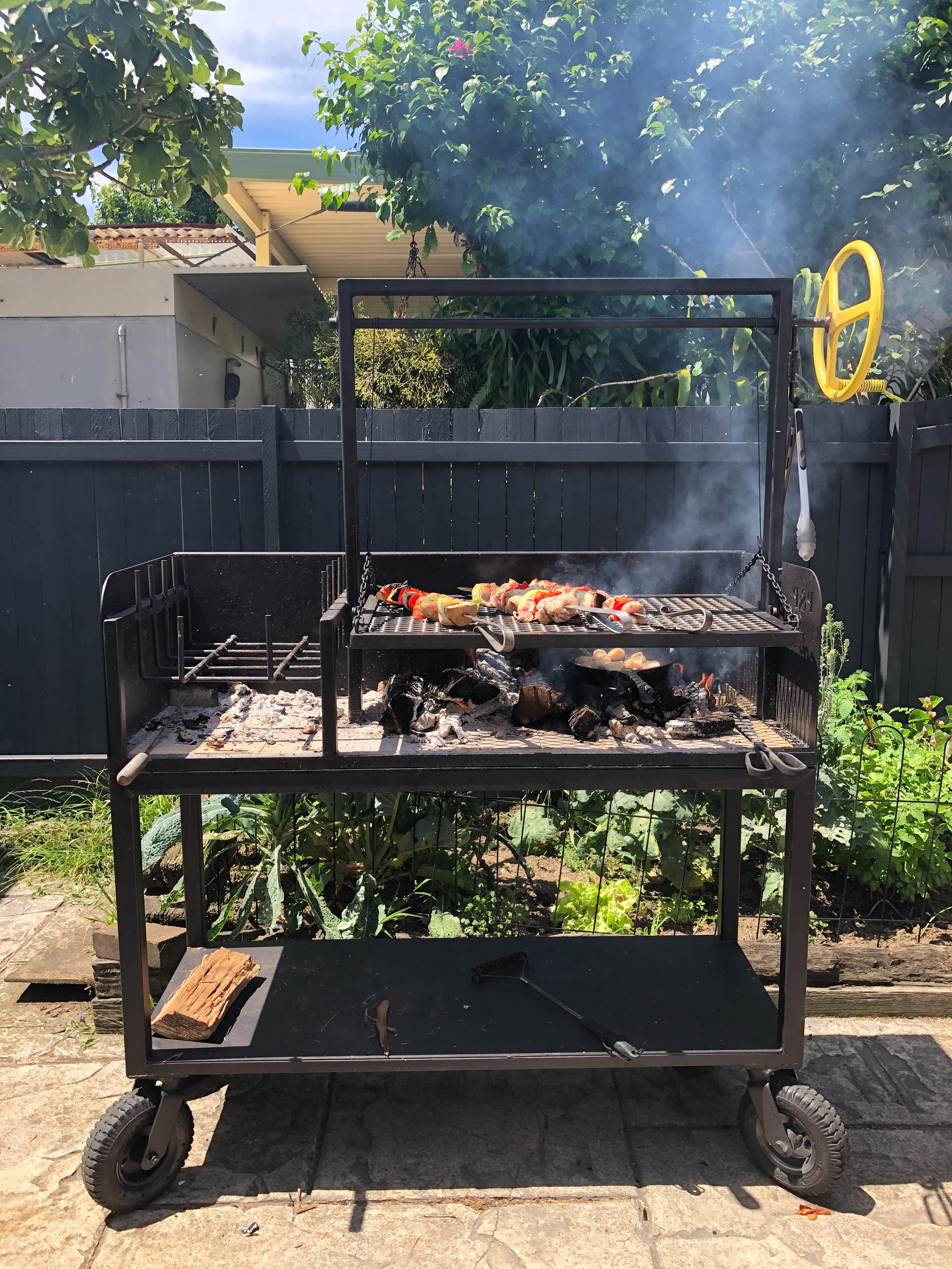 It's a beautiful piece of kit with a huge 810x 495 grill plus a brasero on the left side for burning wood. You stack and light wood in the brasero which burns to charcoal which you then move across to your cooking surface underneath the grill.